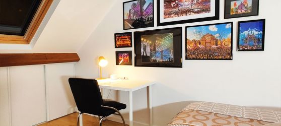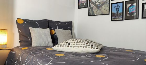 Appartement triplex de 75m2 situé à proximité du centre Oliverdy (voiture 5mn, à pied 20mn) comprenant quatre chambres individuelles : Artist, Stage, Backstage et London.